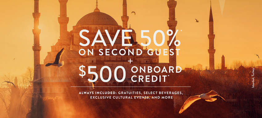 Enjoy the best amenities included at 50% off. This package consists of shore excursions, drink package, specialty dining, and Wi-Fi.